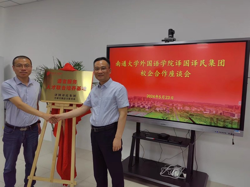 最后,双方进行了语言服务人才联合培养基地的挂牌仪式,标志着双方合作进入了一个全新的阶段。