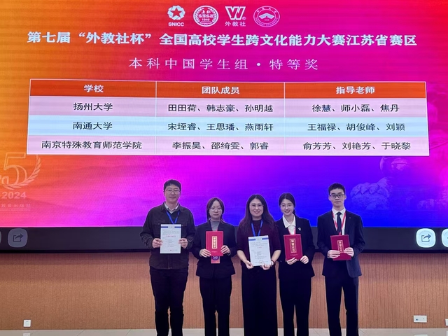 本次大赛致力于培养爱国主义时代新人,引领青年坚定文化自信,提升跨文化能力,培养具有国际视野的人才。大赛吸引了江苏省内59所高校的67支团队、200余位选手参加,他们围绕多元文化生活、商务沟通和外交谈判等主题展开。我校学生凭借扎实的专业知识、出色的赛场表现和灵活的应变能力斩获佳绩。