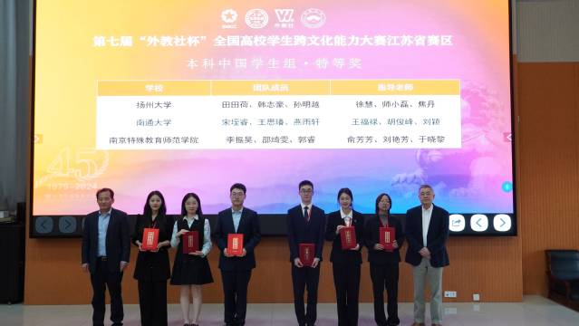 11月1-3日,第七届“外教社杯”全国高校学生跨文化能力大赛江苏省赛区比赛于在我校举办。在此次大赛中,我院商务英语专业宋垤睿、教育科学学院小教语文(定向)专业王思璠、商学院(管理学院)工商管理专业燕雨轩三位同学代表yl8858永利集团出战,经过两轮激烈的角逐,荣获江苏省赛区特等奖。我校留学生SATHINI NAMANIWAN、HOANG THI PHUONG ANH、NGUYEN THI THU获国际学生组二等奖。