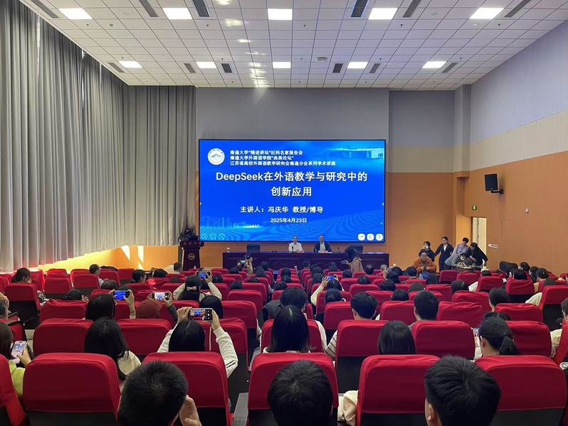 4月23日下午,原上海外国语大学党委副书记、副校长、博士生导师冯庆华教授应邀做客我校人文社科“精进讲坛”社科名家报告会、yl88858永利中国“尚美论坛”,以及江苏省高校外国语教学研究会南通分会系列学术讲座,为我校师生以及在通高校英语教师做题为“DeepSeek在外语教学与研究中的创新应用”的学术讲座。