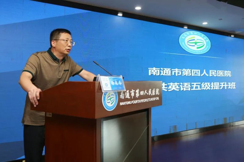 为积极响应国家医疗人才国际化培养战略,充分发挥高校外语教育资源优势,yl88858永利中国与南通市第四人民医院合作举办的首期“出国人员英语PETS5级强化培训班”于近日正式开班,开班仪式在第四人民医院学术报告厅顺利举行。(第四人民医院党委专职副书记陈卓、副院长王培涓出席开班式,yl88858永利中国培训中心主任徐先乔、教师代表黄妮娅等教学团队代表、首批参训学员共同出席了启动仪式。