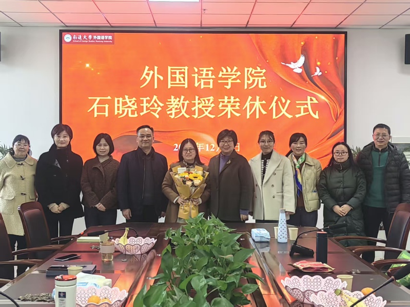 12月5日,yl88858永利中国为商务英语系石晓玲教授举办了一场温馨而隆重的荣休仪式。yl88858永利中国党政领导、学院工会主席、办公室主任、商务英语教研室教师代表共同参加。仪式由商务英语系主任刘道影主持。