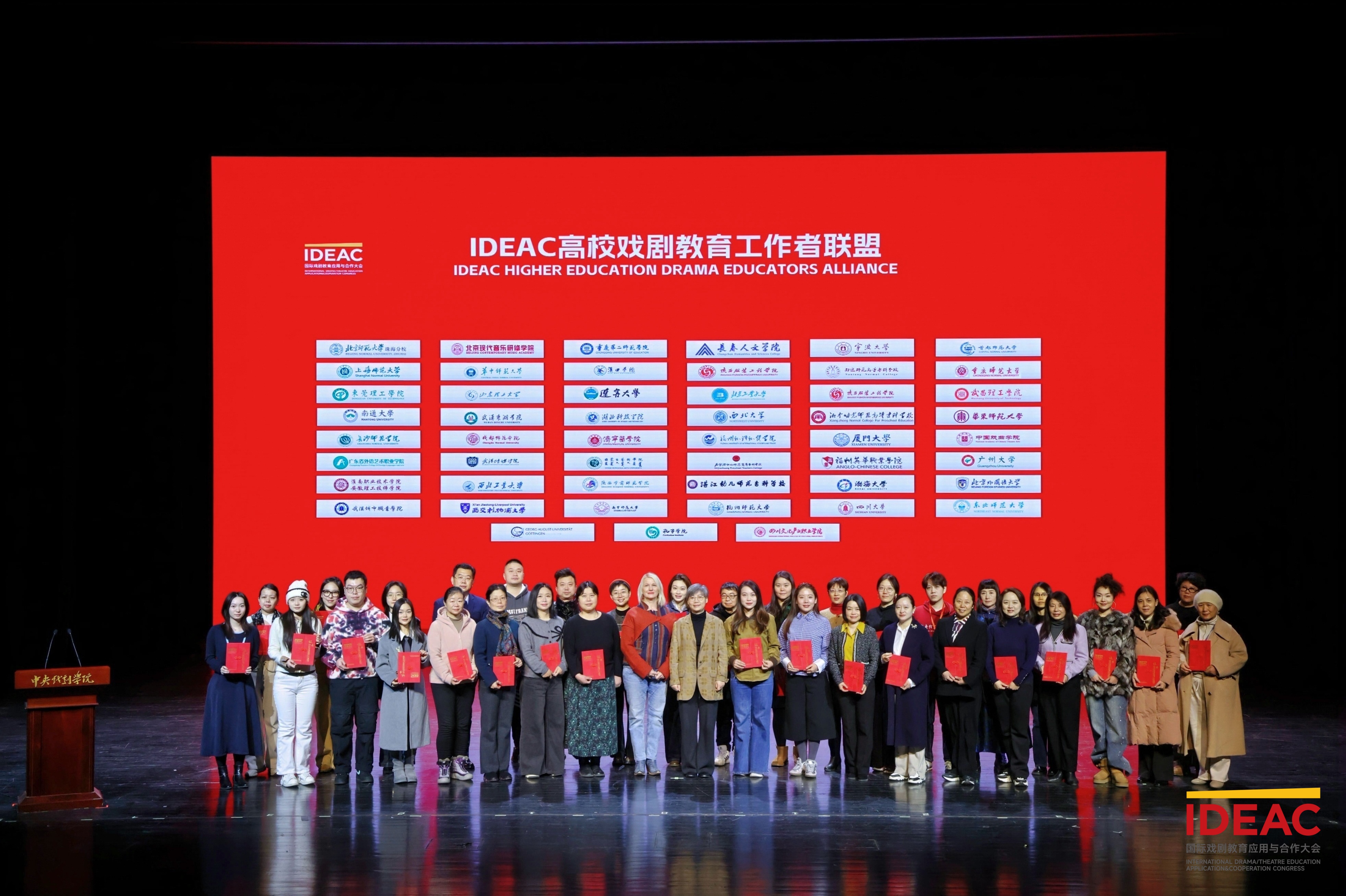 在“IDEAC高校戏剧教育工作者联盟”成立仪式上,姚颖老师作为yl8858永利集团的教师代表,与华东师范大学、北京外国语大学、首都师范大学等全国60余所高校的同行共同接受联盟成员证书。此次入盟标志着我校正式加入全国性戏剧教育协作网络,为今后在戏剧教育、英语戏剧教学与跨文化戏剧研究等领域开展校际合作与资源共享奠定坚实基础。我校亦为联盟中少数兼具外国语学科与戏剧教育交叉基础的成员单位之一。